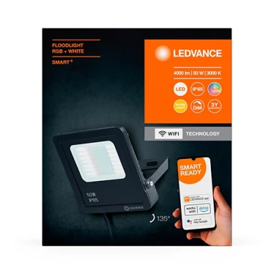 Smart outdoor LED floodlight 50W, RGB+3000K, IP65, 3000Lm, SMART+ MULTICOLOR LEDVANCE / 20-9581 / LED Floodlight / RGB + WW / 50 W / IP65 / Without sensor / 3000 Lm