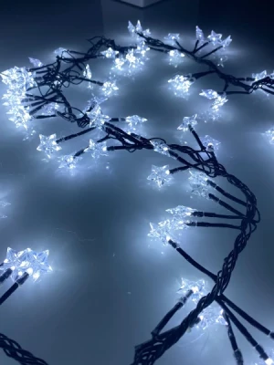 Christmas indoor and outdoor cluster garland with stars 6.5m, cold white, 220V, IP44, 300 LED 19-501 / LED Christmas garland / IP44 / CW - cold white / Black wire / 6,5 m / 300 LEDs