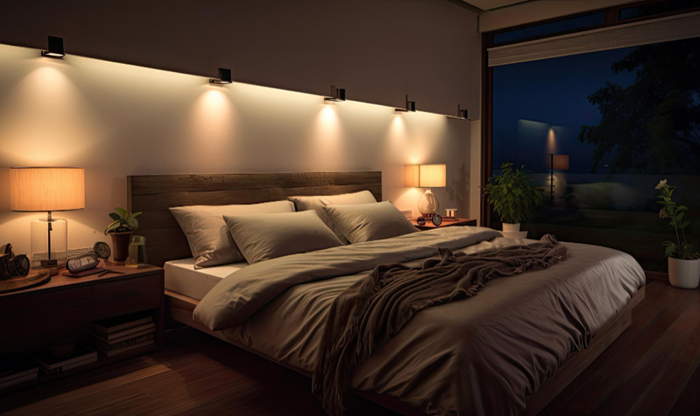 Dienas laikā — spilgta, tuvu dabiskajai, kas uztur enerģiju un produktivitāti. Vakarā — silta, izkliedēta, vēlams ar iespēju to pieklusināt. Bet naktī — tikai tik, cik vajag: nelieli nakts gaismekļi vai netieša apgaismojuma līnijas, kas netraucē atpūtai.