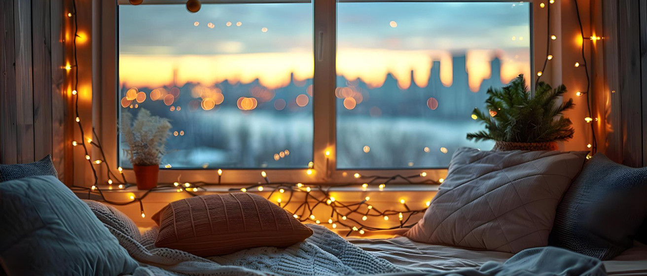 Dažkārt pilnībā pietiek ar vienu logu, lai mājā valdītu svētku noskaņa. Logs kļūst par Ziemassvētku skatlogu: maiga gaisma, atspīdumi uz stikla un atspulgi istabā. Pat ja neliekat egli, nekarināt lampiņu virtenes vai nelipinat sniegavīrus uz balkona, virtene pie loga rada sajūtu, ka svētki jau ir klāt.
