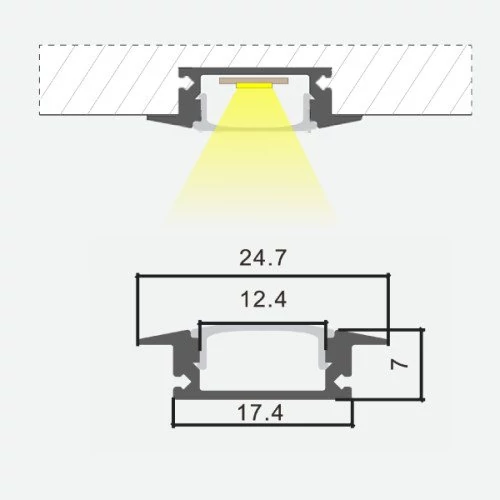 Montējas nišās vai ģipškartona konstrukcijās. Ideāli slēptam apgaismojumam – gaisma “plūst” no iekšpuses. Piemēroti griestos, sienās vai pat kāpnēs.