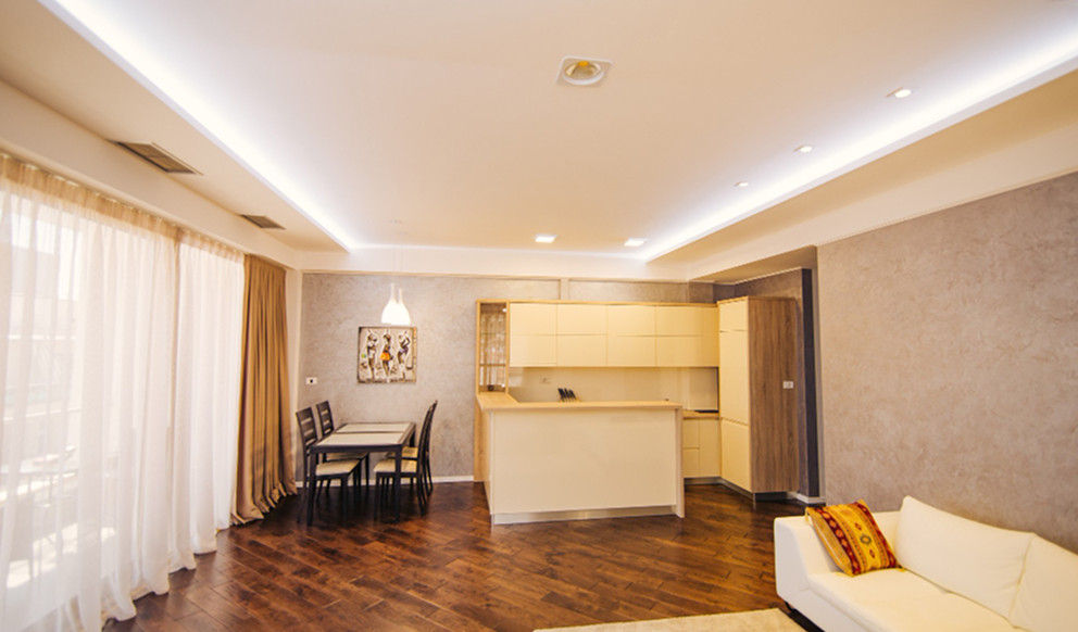 Iebūvētie gaismekļi ir risinājums, kad viss paslēpts griestos. Gaisma šķiet kā plūstoša no nekurienes, radot tīrības sajūtu, izceļot telpas ģeometriju un nepievēršot uzmanību pašiem gaismas avotiem.