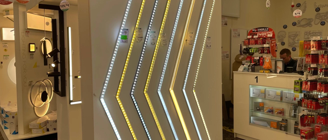 Uzņēmumi izvēlas LED apgaismojumu, lai samazinātu operacionālās izmaksas un uzlabotu darba vides apgaismojuma kvalitāti. Birojos, veikalu telpās, restorānos un viesnīcās LED paneļi un gaismas joslas nodrošina vienmērīgu un efektīvu apgaismojumu, kas var uzlabot darbinieku produktivitāti un klientu pieredzi. LED apgaismojums arī ļauj radoši izcelt produktus un interjera elementus, veicinot zīmola identitāti un veidojot pievilcīgu telpas atmosfēru.