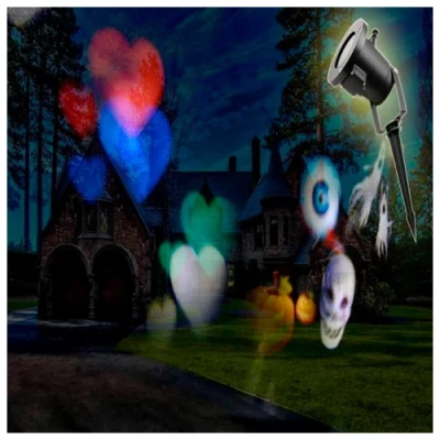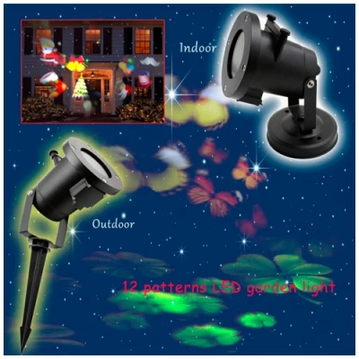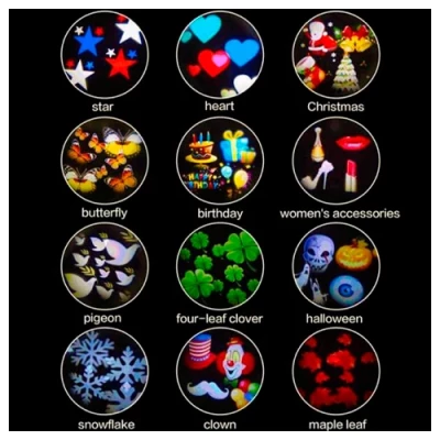 12 kārtiņās vienā projektorā. Dārza projektors ar 12 maināmām kārtiņām Ziemassvētku, Helovīna, Dzimšanas dienas uc. tematikā.