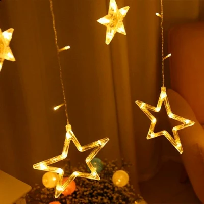 LED Ziemassvētku virtene - aizkari ar zvaigznēm, silti balta, 31V, IP44, 144LED 19-364 / LED Aizkari / 6.5 W / IP44 / WW - silti balts / Caurspīdīgs vads / 2 x 1.5 m / 144 LED diodes