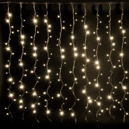 Ziemassvētku virtene - aizkari 3x2m, silti balts, IP44, 240LED, 14.4W 19-351 / LED Aizkari / IP44 / WW - silti balts / Caurspīdīgs vads / 3 x 2 m / 240 LED diodes