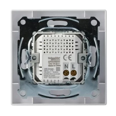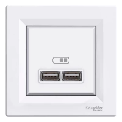 Zemapmetuma 2-vietīgs USB lādētājs A+A ar rāmi, mehaniskais, Asfora SCHNEIDER ELECTRIC / 13-6128 / max 2.1A / 5 V / 2 x USB A / Iebūvējama montāža / Asfora / USB, Type C lādēšanas ligzda
