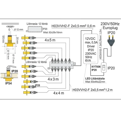 LED Zvaigžņotā debess komplekts, saunām, bērnu istabām, vanas istabām, 12 gaismekļi, 3000K, IP54, 70°, zelts korpuss ABC LED / 03-839 / 3000К - silti balta / IP54