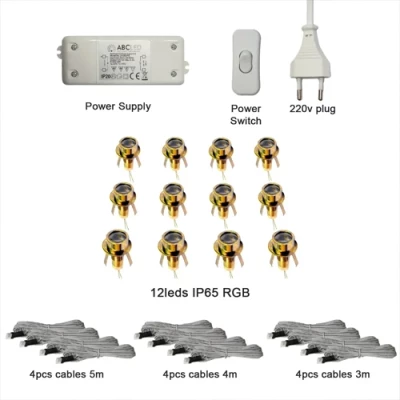 LED Zvaigžņotā debess komplekts, saunām, bērnu istabām, vanas istabām, 12 gaismekļi, automatiskais RGB, IP54, 70°, zelts korpuss ABC LED / 03-8393 / RGB / IP54