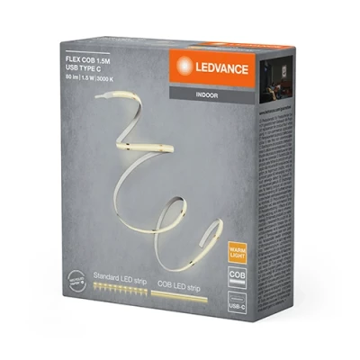 LED COB lente USB Type С, 1.5m, 1.5W, 3000K, IP20 LEDVANCE / 20-8082 / LED Lente / 3000К - silti balta / IP20 / COB Lente