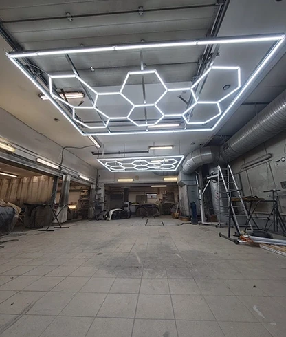 Apmierināts VMC Serviss klients dalījās ar uzstādīto HEXAGON gaismekļu fotogrāfijām savā servisā
