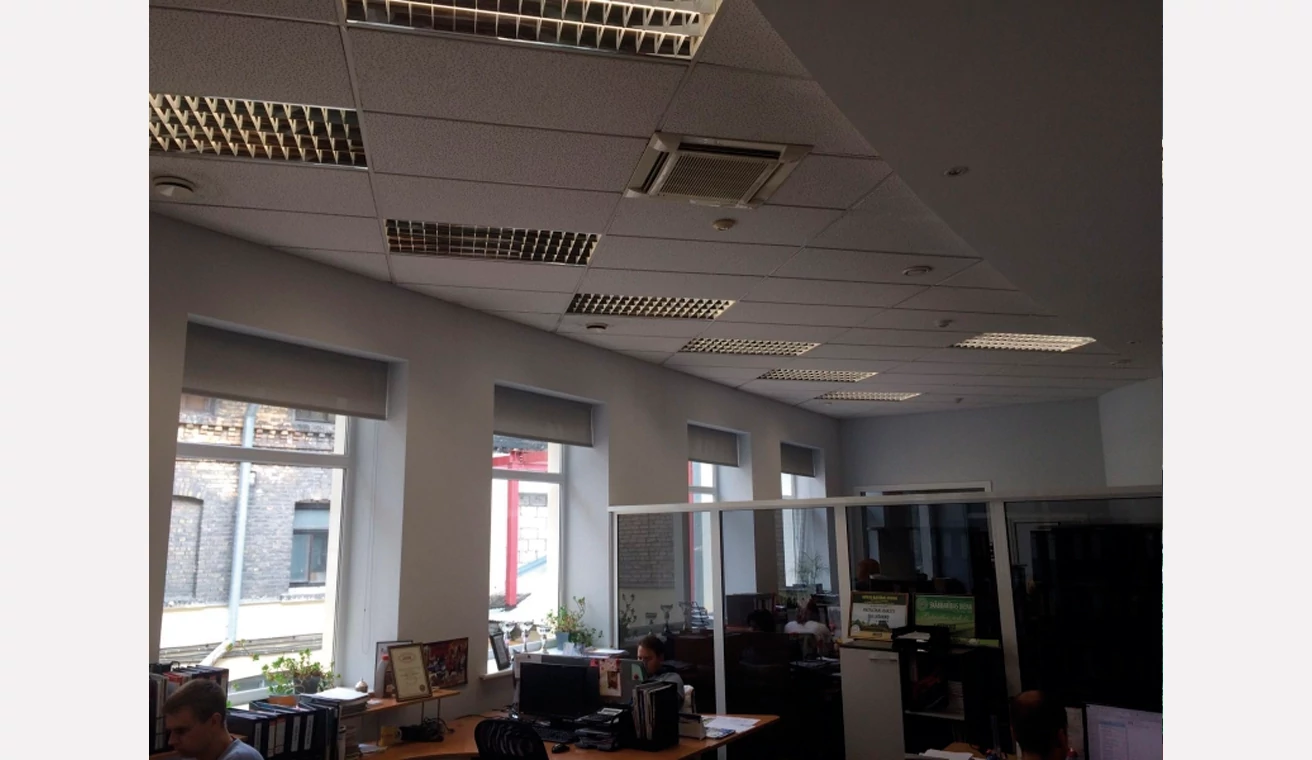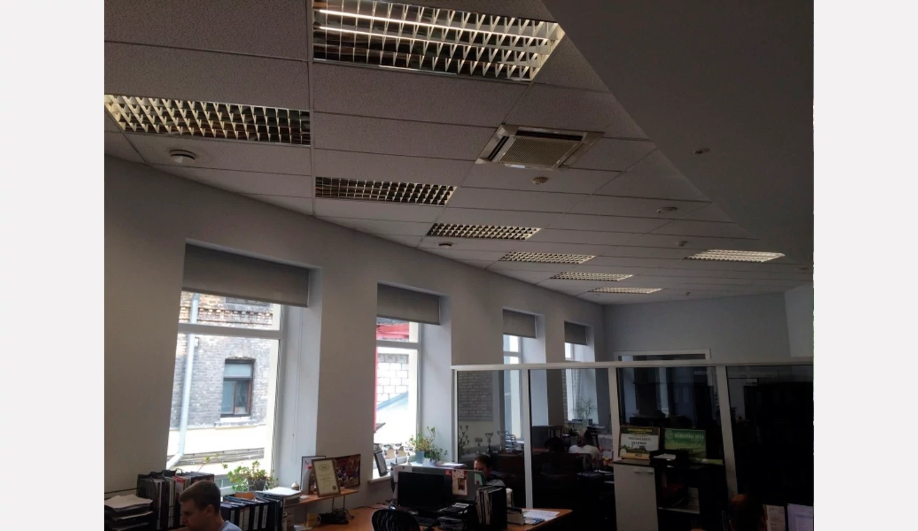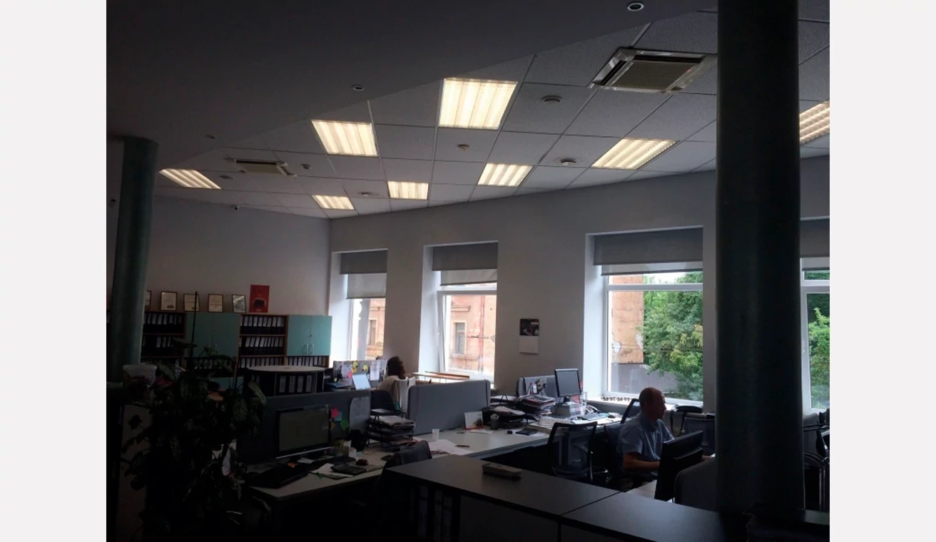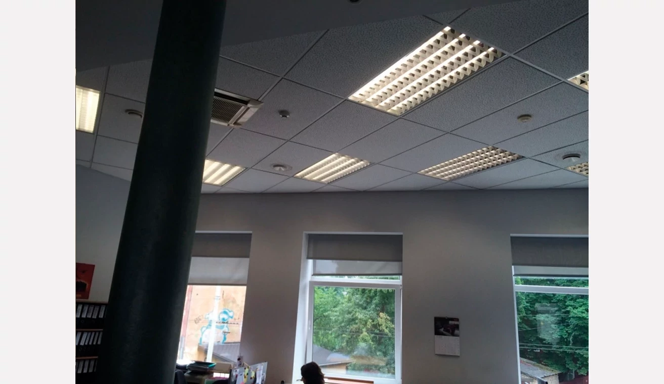 Apgaismojuma risinājums biroju ēkas gaitenī