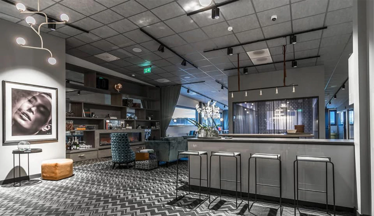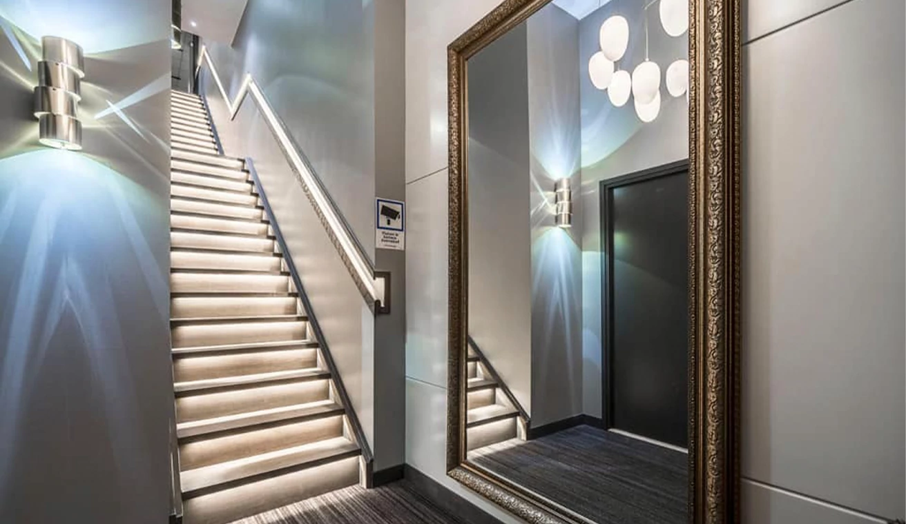 Apgaismojuma risinājums biroju ēkas gaitenī