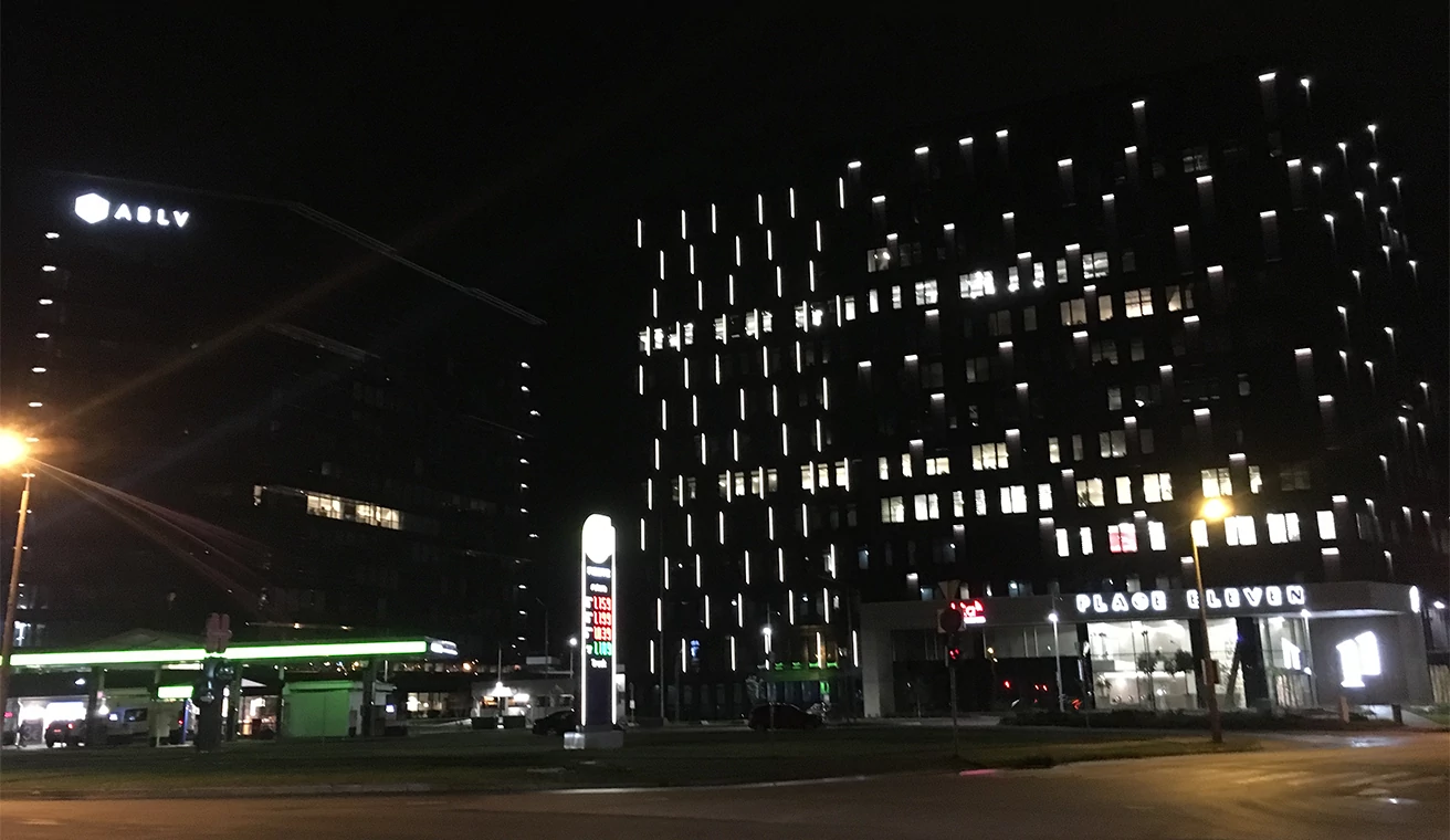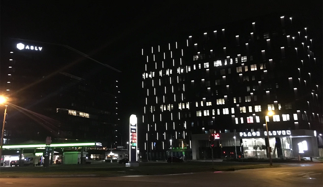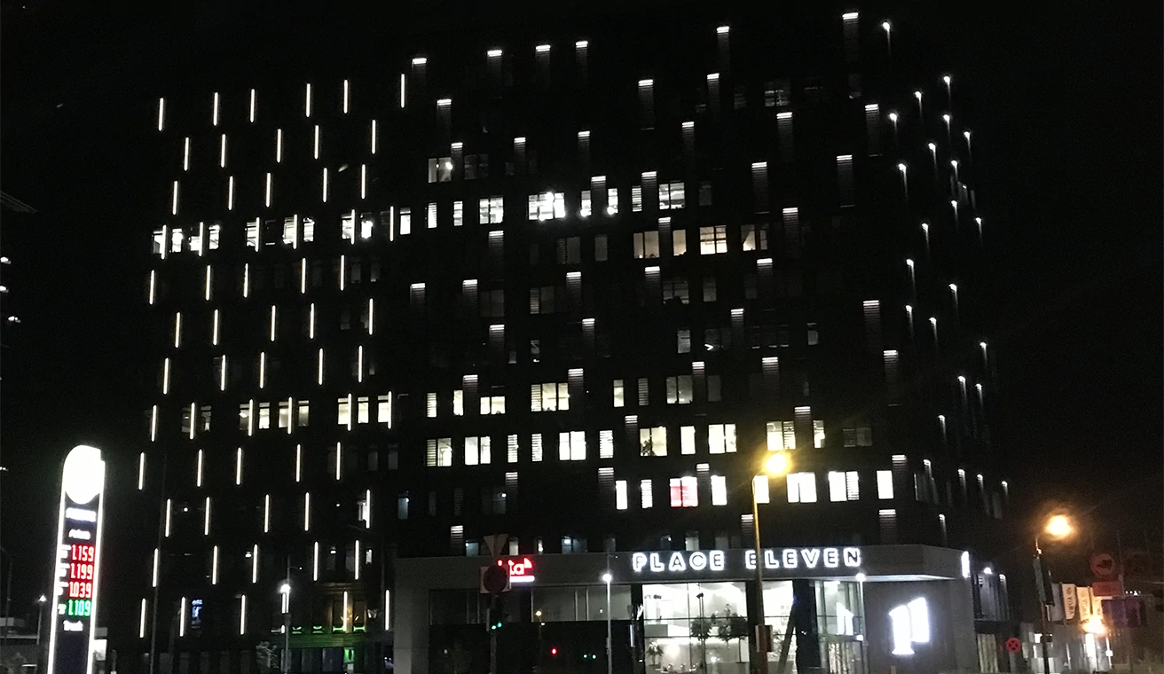 Apgaismojuma risinājums biroju ēkas gaitenī