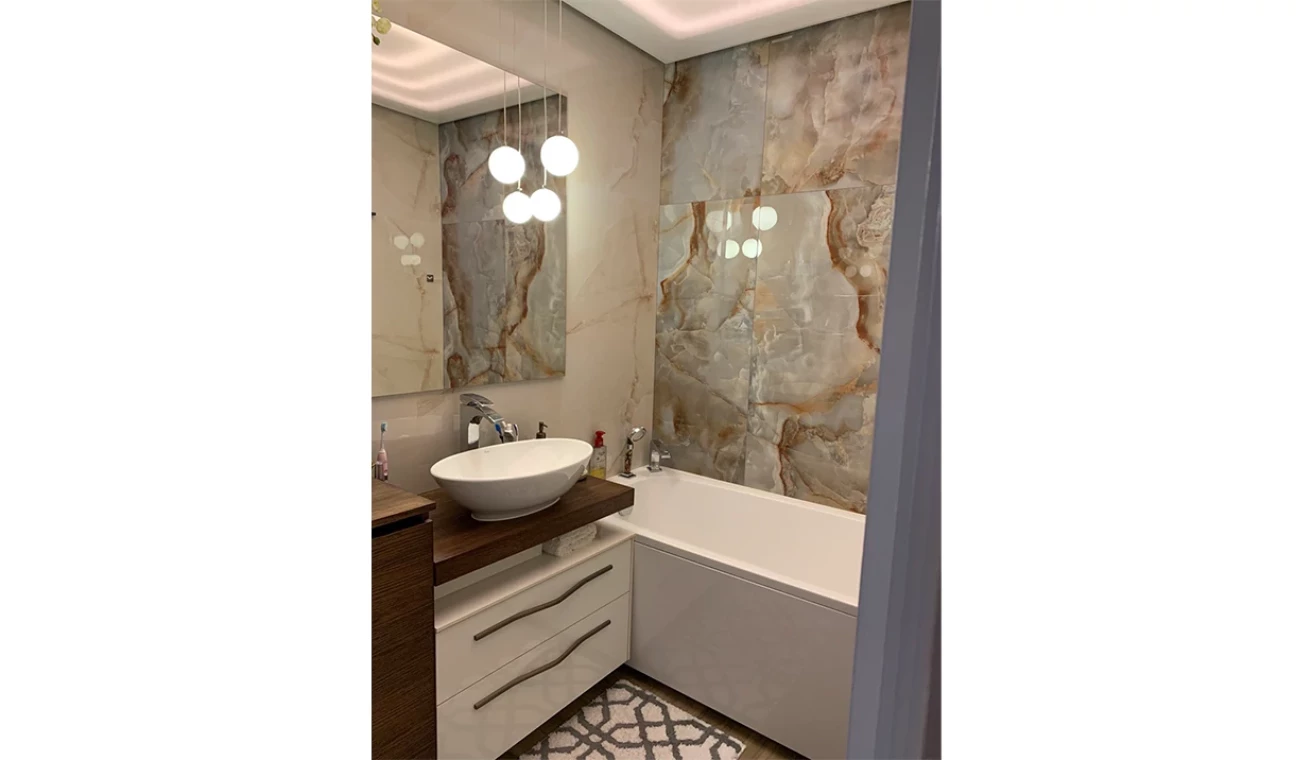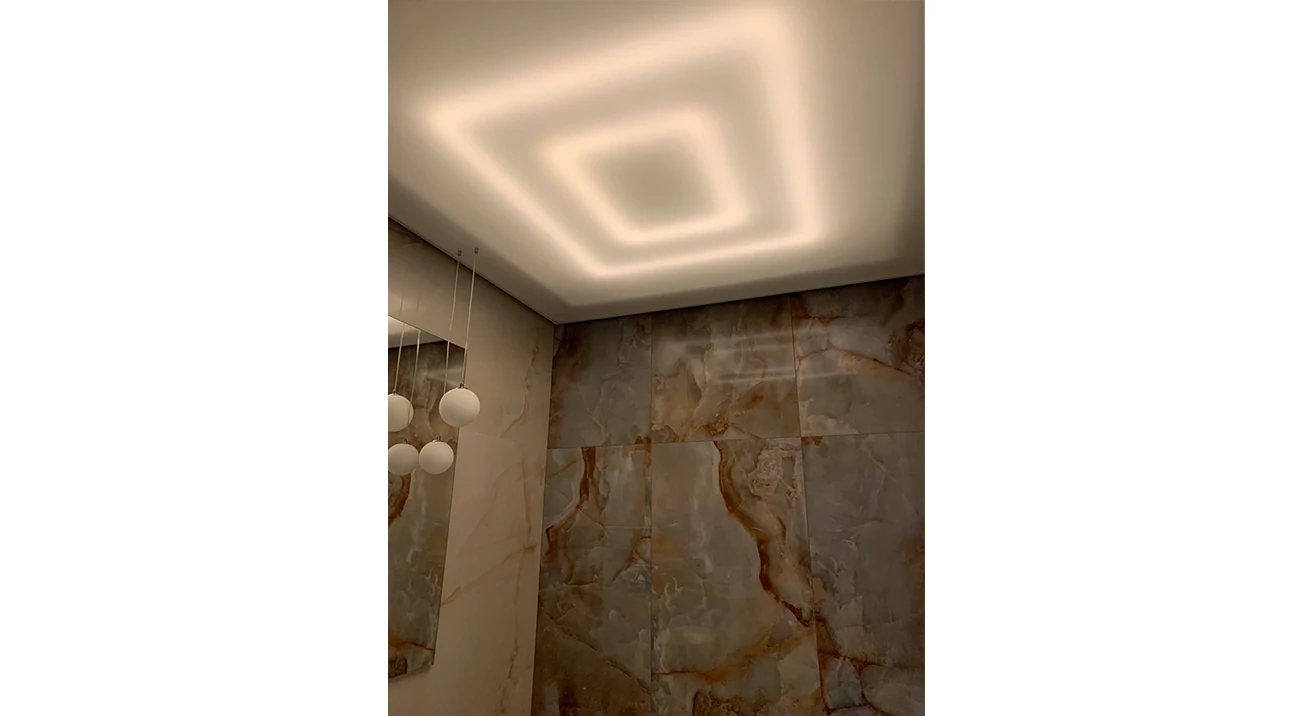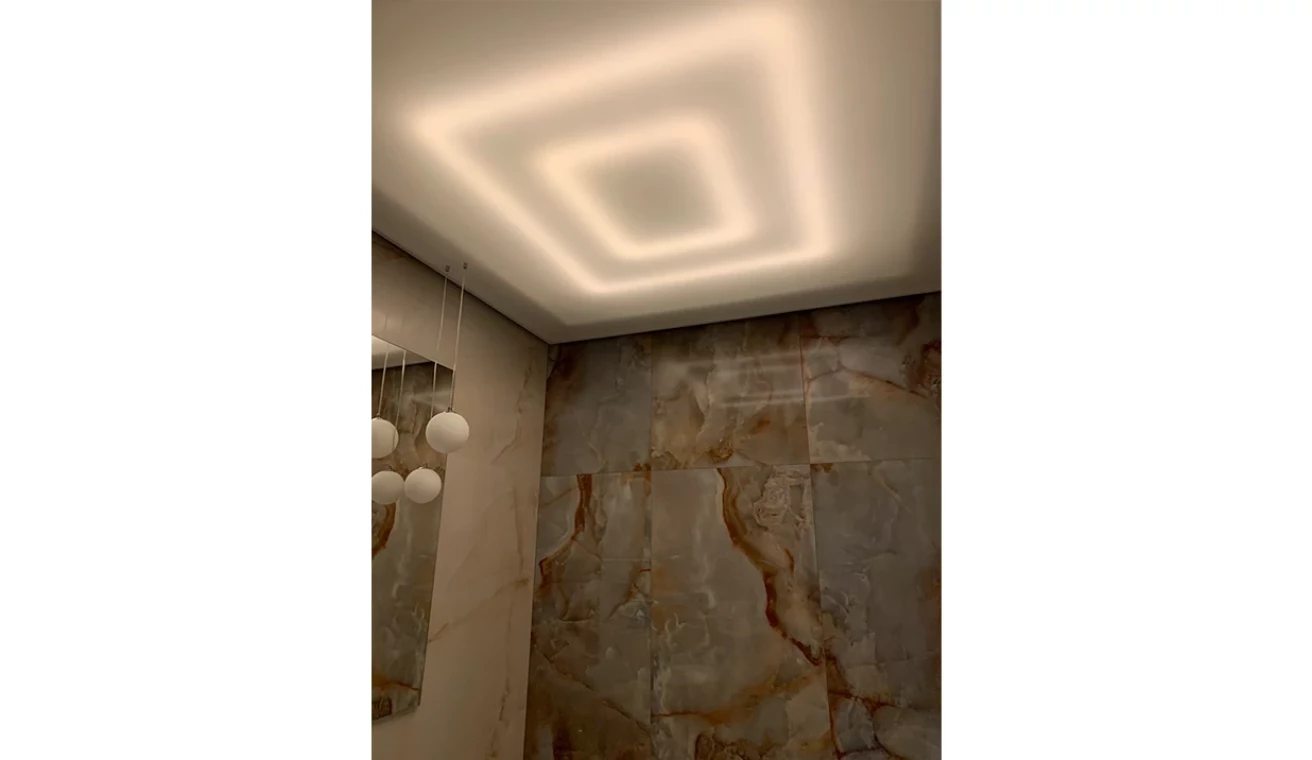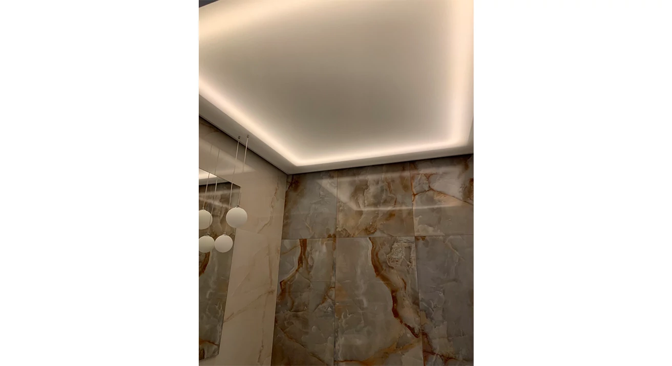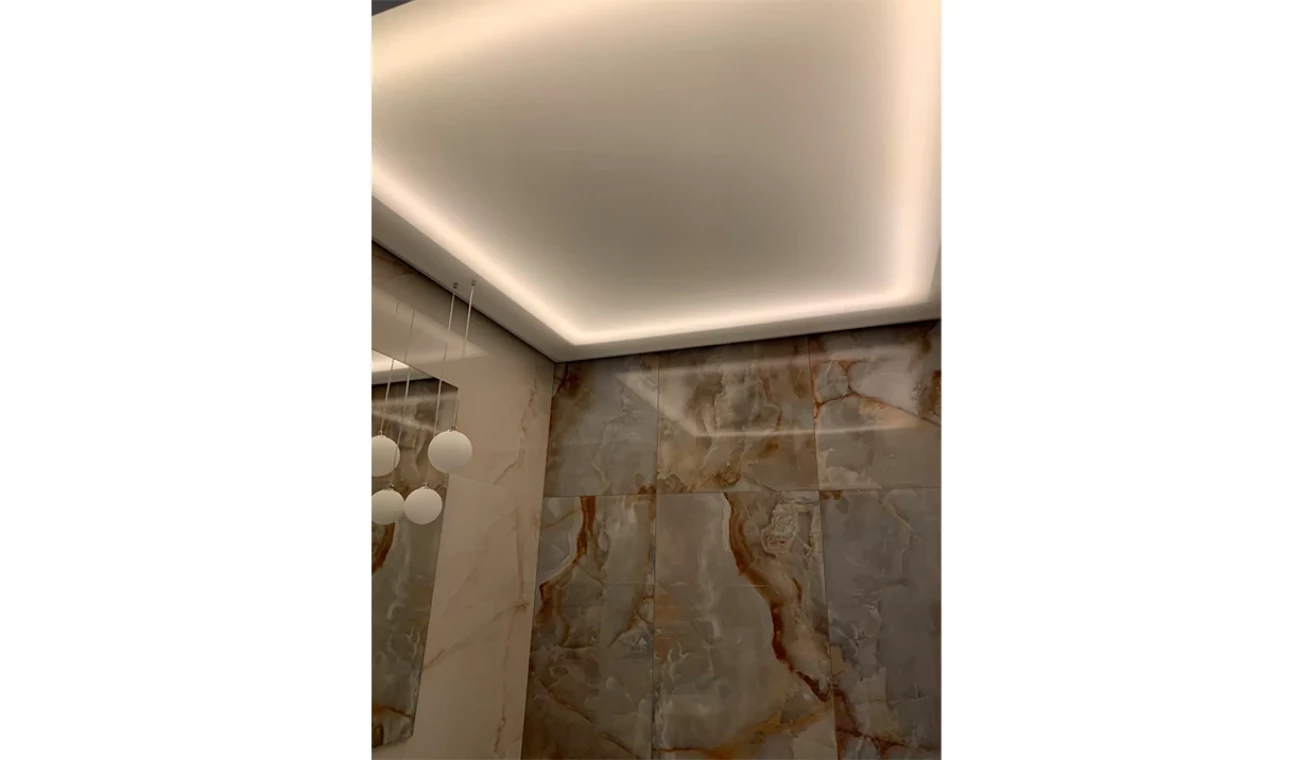 Šajā projektā klients izmantoja lampas no EUROLED un VISIONAL Professional LED lentes, kuras uzstādīja zem piekaramajiem griestiem. Flīzes no EUROFLIZES.LV