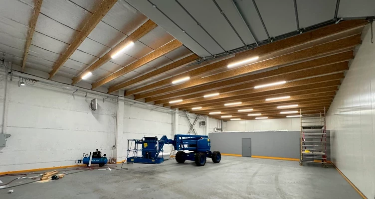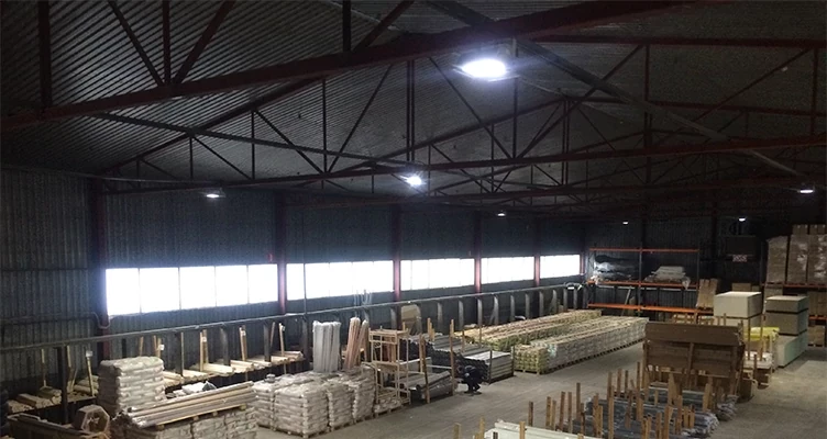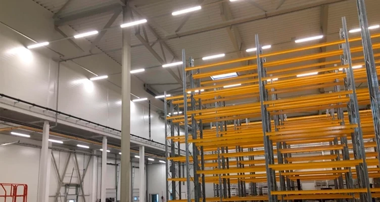 Pabeigts projekts SIA "IZOTERMS". Noliktavā tika uzstādītas 150 cm plakanas lineārās lampas ar jaudu 60 vati. Viena luktura spilgtums ir 6000 lūmeni.