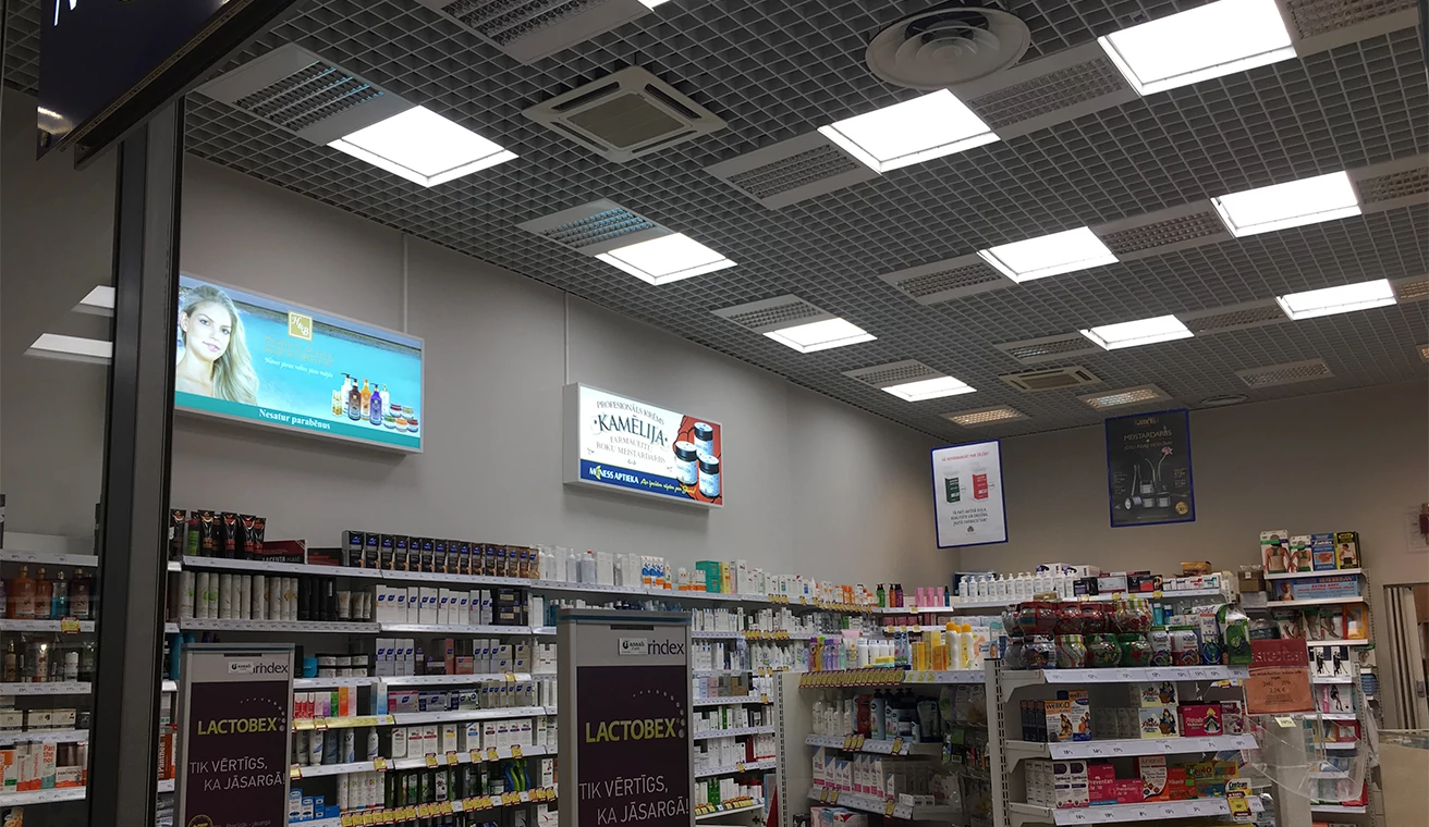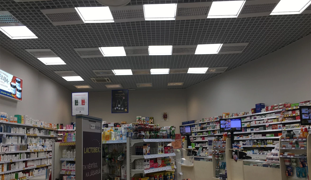 Projektā izmantoti VISIONAL PREMIUM LED paneļi ar 40W jaudu un 4000K krāsu temperatūru (neitrāli balts)