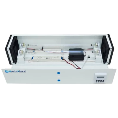 Aprīkots ar augstas kvalitātes ozonu nesaturošām zema spiediena germicidālajām lampām ar ultravioletā starojuma maksimumu 254 nm (UV-C diapazons). Šis starojuma viļņa garums ideālā gadījumā atbilst maksimālās baktericīdās efektivitātes maksimumam, t.i. vislabākā ultravioletā starojuma absorbcija ar mikroorganismu DNS molekulām, kā rezultātā mikrobi zaudē spēju vairoties un iet bojā.