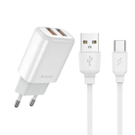 Ātrās uzlādes strāvas adapteris ar 2 x USB un USB-C (Type-C) kabeli JELLICO / 07-716 / Mobilo telefonu aksesuārs