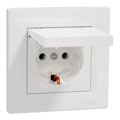 Zemapmetuma kontaktligzda 1-vietīga ar zemējumu, vāku un rāmi, Asfora SCHNEIDER ELECTRIC / 13-3203 / Iebūvējama montāža / IP20 / Asfora / Kontaktligzda