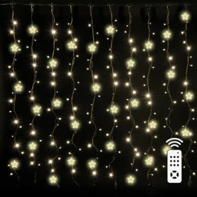 LED Ziemassvētku virtene - aizkari ar zvaigznēm vara stieple un pulti 3x2m, silti balta, USB, IP20, 200LED 19-481 / LED Aizkari / IP20 / WW - silti balts / Vara stieple (LED nano stieple) / 3 x 2 m / 200 LED diodes