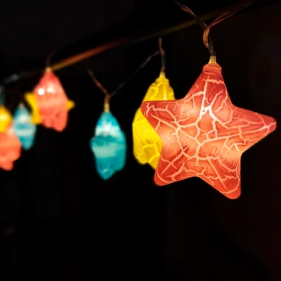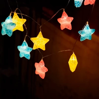 LED Ziemassvētku virtene - Zvaigznes, 1.65m, 10 LED, silti balts, IP20, uz baterijām ENTAC / 10-952 / LED Ziemassvētku virtene / IP20 / WW - silti balts / Caurspīdīgs vads