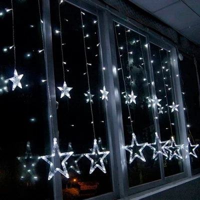 LED Ziemassvētku virtene - aizkari ar zvaigznēm, auksti balta, 31V, IP44, 144LED 19-362 / LED Aizkari / 6.5 W / IP44 / CW - auksti balts / Caurspīdīgs vads / 2 x 1.5 m / 144 LED diodes