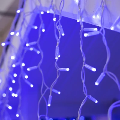 Ziemassvētku virtene - lāstekas fasādēm un telpām, zila, 5.5m, 4.08W, IP44, 100 LED 19-513 / Virtene - lāstekas iekštelpām un mājas fasādei / IP44 / Zila / Balts vads / 5,5 m / 100 LED diodes
