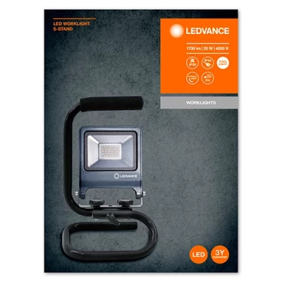 Āra pārnēsājams LED prožektors WORKLIGHTS S-STAND LEDVANCE / 20-222 / LED Prožektors / 4000K - neitrāli balta / 20 W / IP65 / Bez sensora / 1700 Lm