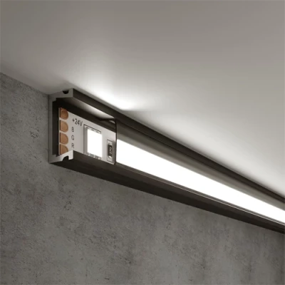 Alumīnija virsapmetuma LED profilu var uzstādīt absolūti uz jebkuras līdzenas virsmas, piemēram, lai apgaismotu sienas, griestus, kāpnes, mēbeles.