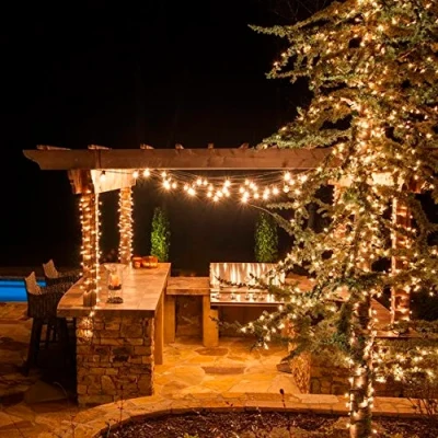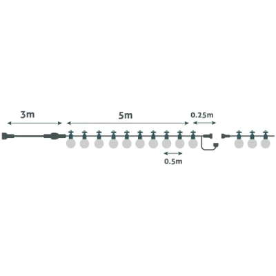 Komplekts LED āra dārza 5m virtenes dārzam un terasēm ar silti baltām spuldzēm AVIDE / 10-930 / Dekoratīva iekštelpu un ārtelpu virtene E27 spuldzēm / 5 metri / Integrēts cokols / Melns vads
