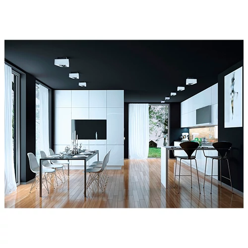 Встраиваемые – это те, что “прячутся” в потолке. Видна только аккуратная рамка или линза, все остальное скрыто. Выглядит минималистично, не перегружает интерьер. Подходят для натяжных и подвесных потолков, где есть запас по глубине, ведь часть конструкции уходит внутрь. Отличный вариант, если Вы любите чистые линии и визуальный порядок.