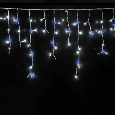 Рождественская гирлянда - сосульки, бахрома для фасадов и помещений, холодный белый, 5.5m, 4.08W, IP44, 100 LED 19-517 / Гирлянда - сосульки для фасадов домов и помещений / 4.08 Вт / IP44 / CW - холодный белый + эффект мерцания (FLASH) / Белый провод / 5,5 м / 100 LED диодов