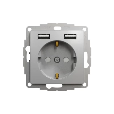 Встраиваемая 1-местная розетка с заземлением, 2xUSB, механическая SEDNA Design SCHNEIDER ELECTRIC / 13-3391 / Встраиваемый монтаж / SEDNA Design / USB, Type C розетка
