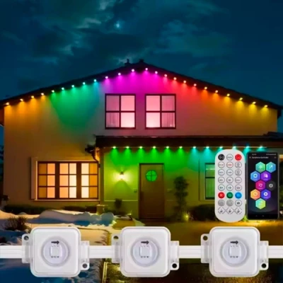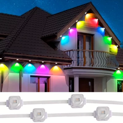 Уличная световая гирлянда для подсветки карнизов и фасадов, RGBIC, 15 м, 30 ламп, IP67 05-949 / Комплект LED ленты / Встроенный источник света / IP67 / RGB - разноцветный / Белый провод / 15 м