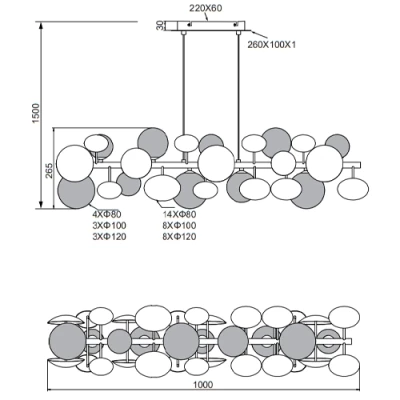 Подвесной светильник BUBBLE, excl. 10xG9, max 10W TRIO SELECT / 70-9500 / Подвесной светильник / макс 10 Вт / Excl. G9 лампочка (не входит в комплект)